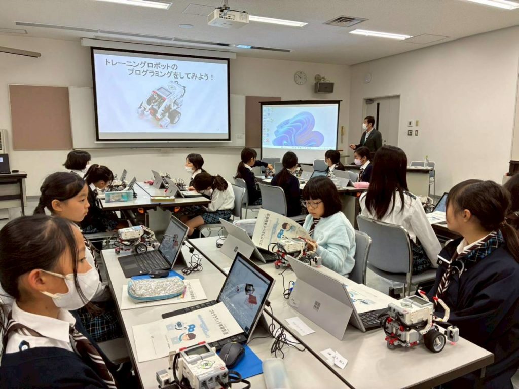 午前はロボティクスバッチをとる中で、大学生の方々と一緒にパソコンを使ってプログラムを作り上げたり、ロボットをプログラムで動かしたりしました。